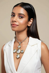 The Gold & Silver Polki Church Necklace blends classic charm with modern design. Crafted from copper and brass with a 22k gold or white rhodium finish, it features intricate detailing and sparkling Polki stones, making it a timeless piece that adds elegance to any look.