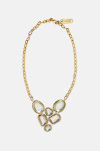 The Gold & Silver Polki Heart Necklace expresses timeless love through elegant design. Crafted in gold-finished copper and brass with a 22k gold or white rhodium coating, it features a charming heart pendant adorned with shimmering Polki stones for a delicate and meaningful statement piece.