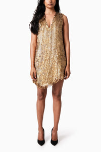 The Dress X is a celebration of our 10 years. Completely hand embroidered over a span of 10 days, it sits close to the body and is our version of "NIGHT". Taking the classic shift dress forward, we curved the hem and gave it a contrasted fuchsia lining to give the dress a playful look.