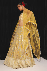 Elevate your look with this Gold Yellow Tulle Cape from the Rangrez collection by 29 India. Crafted from luxurious Net, this V-shaped tulle cape features mirror spread detailing and embellished embroidery, adding a touch of glamour and elegance.