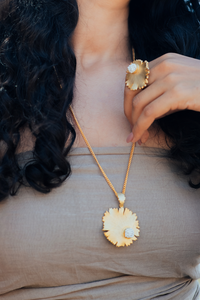 These jewelry pieces are meticulously handcrafted in brass and plated with nickel. To maintain your pieces, kindly allow your perfume and hairspray to fully dry before wearing your jewellery. Store your pieces in the provided packaging or any soft cloth bag.