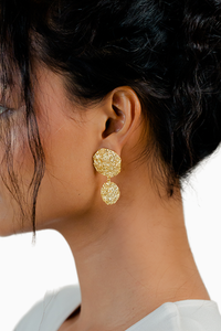 These jewelry pieces are meticulously handcrafted in brass and plated with nickel. To maintain your pieces, kindly allow your perfume and hairspray to fully dry before wearing your jewellery. Store your pieces in the provided packaging or any soft cloth bag.
