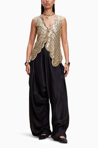 Golden Embellished Jacket And Black Dhoti Set