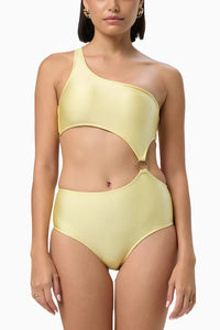 Ripple is an asymmetrical cut-out one-piece, a statement in modern minimalism and sculptural design. Crafted from premium stretch fabric, this sleek silhouette features a one-shoulder neckline and side cut-outs, connected with a gold ring detail that adds a touch of understated luxury