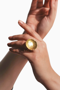 These jewelry pieces are meticulously handcrafted in brass and plated with nickel. To maintain your pieces, kindly allow your perfume and hairspray to fully dry before wearing your jewellery. Store your pieces in the provided packaging or any soft cloth bag.