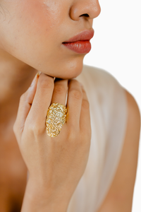Roshini ring is a literal piece of the moon for your fingers. Crafted in brass with the beautiful texture of moon and an asymmetrical cut.
