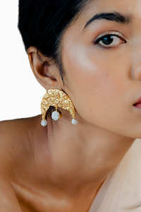 These jewelry pieces are meticulously handcrafted in brass and plated with nickel. To maintain your pieces, kindly allow your perfume and hairspray to fully dry before wearing your jewellery. Store your pieces in the provided packaging or any soft cloth bag.