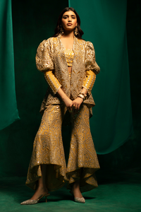 Golden Silver Jacket with Tulip Sharara and Mirrorwork Bandeau