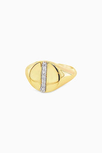 Modern minimalism meets classic design with the Golden Stripe Signet Ring. Featuring a sleek vertical stripe of sparkling moissanites set against a polished vermeil gold surface, this ring brings effortless sophistication to your everyday look. A bold yet refined piece, it’s perfect for adding a touch of luxury to your collection.