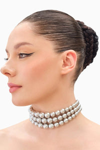 The Graded Silver Pearl Choker features a sophisticated graduated design, with pearls that gradually increase in size, creating a refined and elegant look. The lustrous silver-toned pearls add a modern, chic twist to the classic pearl choker, offering a sleek and polished finish.