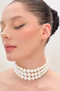 The Graded White Pearl Choker features a graceful design, with pearls that gradually increase in size, creating an elegant, graduated effect. The smooth, lustrous white pearls are carefully arranged to sit snugly around the neck, offering a refined and sophisticated look.