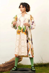 Grandma tittle dress with cords is a charming and nostalgic garment that combines vintage-inspired prints with modern details. Featuring an all-over print reminiscent of classic grandma patterns, this dress exudes whimsical charm. The addition of cords near the neckline adds a unique and contemporary touch, creating visual interest and enhancing the overall design. Perfect for casual outings or daytime events, this dress offers a playful yet stylish look.