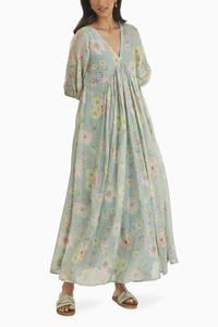The Gratitude Sage Green Dress features the timeless charm of traditional sooti chanderi fabric, known for its lightweight texture and delicate drape. The hand-painted sage green floral print adds a touch of sophistication to the v-neck long dress, creating a beautiful interplay of texture and design. The dress comes with a cotton silk slip.