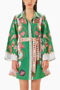 The a thena dress in a n exclusive print by Miri's is the hea rt of our collection - “ Wild a t Hea rt “Cra fted in Miri's signa ture soft cotton linen blend, the dress is a stra ight shift dress with a n embroidered belt &a mp; is embellished with embroidered ba dges - a touch of trendy fun
