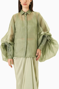 Elevate your wardrobe with Ritika Arya Jain’s Green Bag Sleeve Shirt. Made from luxurious organza, this shirt in a vibrant green hue features unique bag sleeves and offers a true-to-size fit, blending contemporary design with elegant sophistication for a standout look.