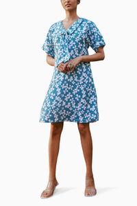 Crafted in linen, our boho dress features a drop shoulder and a peterpan collar with a fun neck-tie detail. Add it to your cart if you're looking for something both sweet and sophisticated.