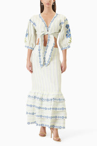 Featuring the Green Blue Chicory Set. Crafted in breathable linen with hand-embroidered accents. This regular-fit set in green and blue adds a touch of elegance to your ensemble.