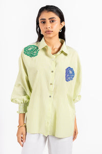 Composition: Seersucker Color: Green Checks Fit : Oversized Embroidery: Machine Embroidery Product Code: SVEURAI-AW25-LS20
