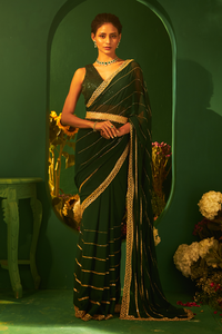 Featuring green pure georgette saree. The set is crafted with the finest materials and will accentuate the look.