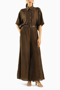 Featuring Embellished Flared Palazzo by Twenty Nine India from Nisha Collection. Accentuating a flattering high waist and a dramatic flared silhouette, this skirt is adorned with mirrorwork on the waist, adding a touch of sparkle and sophistication to your look.