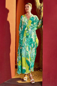 Relax in style with this red kaftan dress, featuring an elasticated waist and loose-fitting sleeves for effortless comfort. A chic choice for any sun-soaked escape.