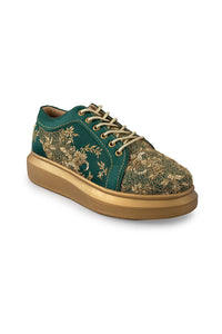 The Jungle n’ Jazz classic sneakers know how to put on a show. They exude a melodious composition of rich notes added by the zari embroidery and the electric notes of the emerald green satin.