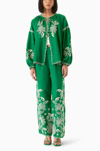 Fea turing the Green Ma rlyn Summer Ja cket with Pa nts co-ord set by Miri Pret. Cra fted from a blend of 70% linen a nd 30% viscose, this set is in a lush green hue tha t offers a regula r fit. Embra ce comfort a nd style with its versa tile design.