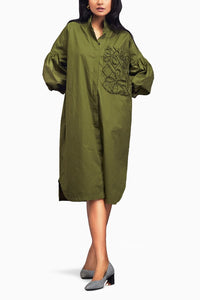 Featuring Green Oversized Shirt Dress with Puff Sleeves and Embroidered Pocket by Deepika Arora. This effortlessly chic oversized shirt dress is a perfect combination of laid-back style and modern elegance. Made from soft, breathable cotton, it offers ultimate comfort with a relaxed, flowing fit that flatters the body. A key highlight of this dress is the beautifully embroidered pocket, which adds a delicate touch of craftsmanship and unique detail to the otherwise minimalist design.