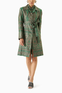 Green Printed Trench Coat