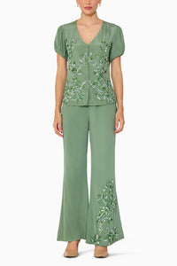 SHA Green Co-ord Set by Shasha Gaba is a refined pret Indowestern ensemble crafted in soft viscose crepe with a regular fit. Designed in an elegant green, this co-ord set blends fluid drape with modern ease, creating a versatile look for polished day or evening styling.