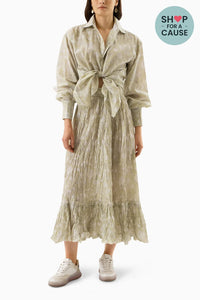 This Bangalore shirt is minimal & modish, perfect for a blended style. It comes in a block printed fabric. The long sleeves shirt features a spread collar with button cuffs and puffed sleeves