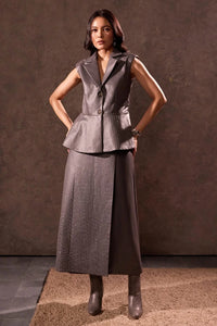 Crafted with lightweight faux leather, this skirt features stitch detailing that enhances its textured finish. Its wrap silhouette flatters all body types.