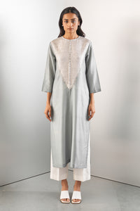 Fabric- 100% Silk Color- Grey Components- 1 Product Code- SVEMEDISS25ICICLEKURTAGREY