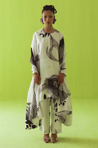 A-line silhouette with effortless structure. Delicate organza dupatta adds a sheer layer of lightness. Fluid prints echo organic rhythm and movement. Subtle, composed, and thoughtfully detailed.