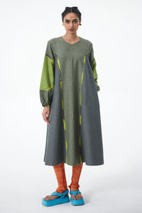 Fabric- Handwoven Merino Wool Color- Grey-Lime Components- 1 Product Code- SVEMEDI25W Sorter's Dress-GREYLIME