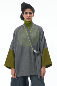 Fabric- Handwoven Merino Wool Color- Grey-Lime Components- 1 Product Code- SVEMEDI25W Weaver's Jacket-GREYLIME