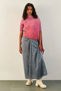 A free-size silk top with asymmetrical neck and sleeves. Featuring all-over shibori, our shapeshifter fits all. For days when you want to make a statement.