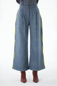 Sculpted trousers, with a take on balloon silhoutte with bold pleats. Made in handwoven woollen felt, the silhouette holds a good structure while giving good flow to the form.