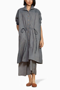 This high-collar kaftan dress combines smart style with comfort, making it a standout piece for any wardrobe. The design offers an easy fit, complemented by drawstrings at the waist that allow for a beautiful cinched look. This feature not only adds to the dress's aesthetic appeal but also provides versatility in styling, allowing the wearer to adjust the fit according to their preference