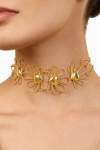 Inspired by the timeless beauty of blooming flowers, the Gulabo Choker captures the essence of elegance and femininity. A perfect adornment for wedding celebrations.Crafted in 22kt gold plating, each piece radiates a golden glow, free from nickel and lead, ensuring both luxury and comfort. Celebrate your unique charm with our light- weight jewelry that blossoms with every look. Let Gulabo adorn you with the beauty of nature's finest art. Wear the beauty of Gulabo, and let your radiance bloom.