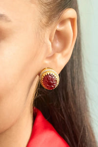Material- 22 karat gold-plated, atleast 4-6 x thicker than industry standard Recycled brass / hypoallergenic / 100% skin-safe (tested) Color- Maroon Dimensions- 2 x 1.5 cm Product Code- SVEAULE1041