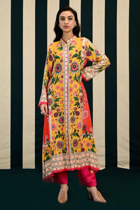Featuring the Gulmohar Gauri Kurta Set from Swati Vijaivargie’s Gulmohar Collection – discover elegance in every detail. Draped in rich mustard with red accents, the silk kurta features delicate mirror work, a concealed button placket, and a chic side slit. Paired with linen satin pants designed with a front belt and back elastic, this ensemble is a perfect blend of style, comfort, and timeless charm.