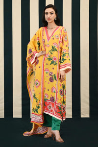 Featuring the Gulmohar JhumkiKurta Set with Stole from Swati Vijaivargie’s Gulmohar Collection – echoing the melodies of tradition with a touch of modern finesse. This mustard silk kurta, embellished with delicate mirror work, pairs beautifully with emerald linen satin pants featuring a front belt and back elastic. Finished with a matching stole, it's a timeless blend of heritage and elegance.