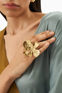Referenced from botanical illustrations of the Magnolia flower, this gold dipped ring is a gorgeous accent piece !