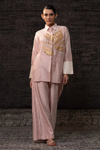 Composition: Top: Chanderi Silk, Bottom : Chanderi Silk, Lining : Shantoon Color: Blush Embroidery: Patch Fit: Comfortable Fit Components: 2 Product Code: SVEEEDA_Gulnaar_Leaf Coord_Blush