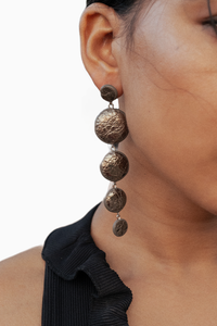 Twilight danglers will add a touch of dramatic flair to any event! Made from gunmetal crinkled leather in an asymmetric dangle pattern, these lightweight earrings will make a statement - without weighing you down. Slay the night with these show-stopping earrings!