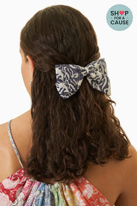 Featuring Blue Hand Block Printed Cotton Hair Bows, each designed with vibrant patterns and crafted from 100% cotton. These bows include a concealed metal clip for secure fastening, offering both style and practicality in a multicolor palette. Comes in a pair.