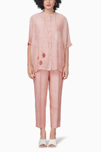 Featuring a Hakoni print cotton chanderi kaftan top with pintuck detail and silk chanderi pants.