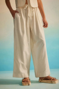 Crafted from striped Chanderi, the Hama Akari Drawstring Pant drapes effortlessly, offering a fluid silhouette that moves with you. The adjustable drawstring features detailed ends, adding a subtle touch of craftsmanship, while side pockets bring practicality to refined design. Lightweight and breathable, with hand screenprinted accents, these pants balance comfort and style perfect for days when ease meets elegance.