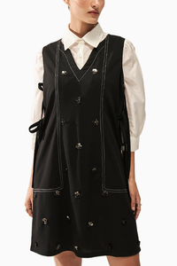 Features Hand Embellished Monochrome Dress by Boho Chic from Love Cabo Collection. Meticulously crafted in Italian Crepe, this hand-embellished dress is adorned with flower petals and side ties. Comes with a contrast stitching,